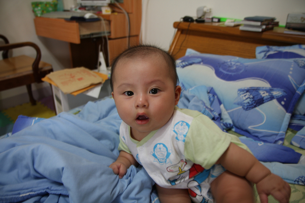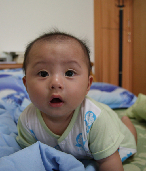 我弟的兒子....剛滿五個月,已經會坐跟爬了唷。 小孩子的眼睛總是那麼的深邃又純真。充滿好奇的在看著我的相機.....(大伯..你拿的是什麼東西呀.....)弟弟乖...大伯有練過.等你長大了,再讓你玩唷....