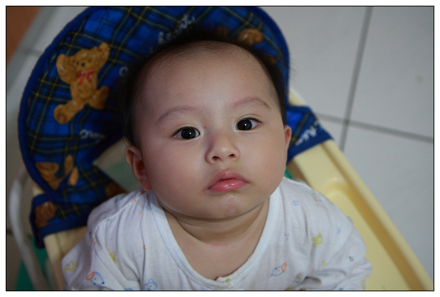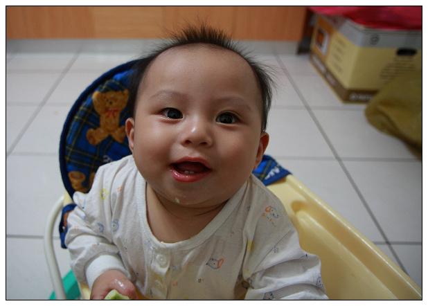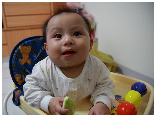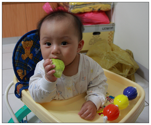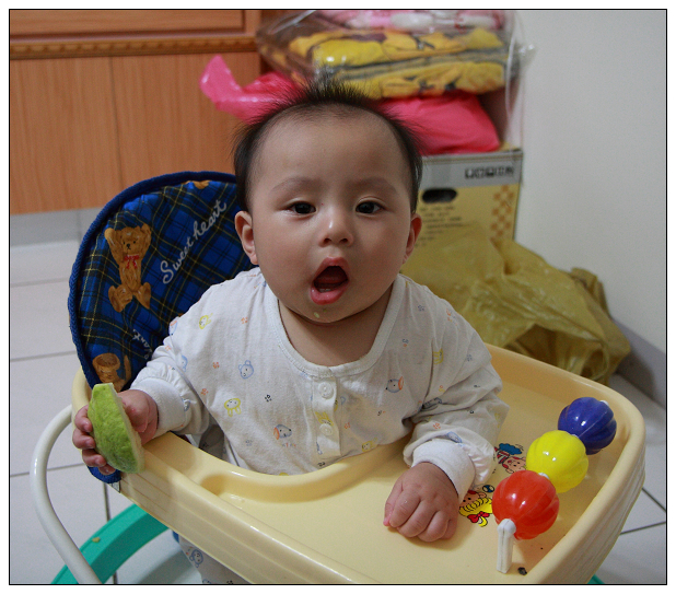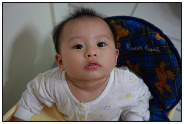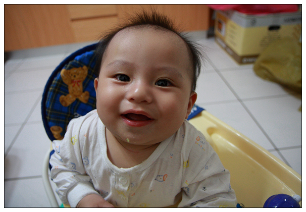 弟弟已經九個月大了,現在皮的跟牛一樣。因為開始長牙齒的關係,看到東西就想咬。這個是他的招牌表情。